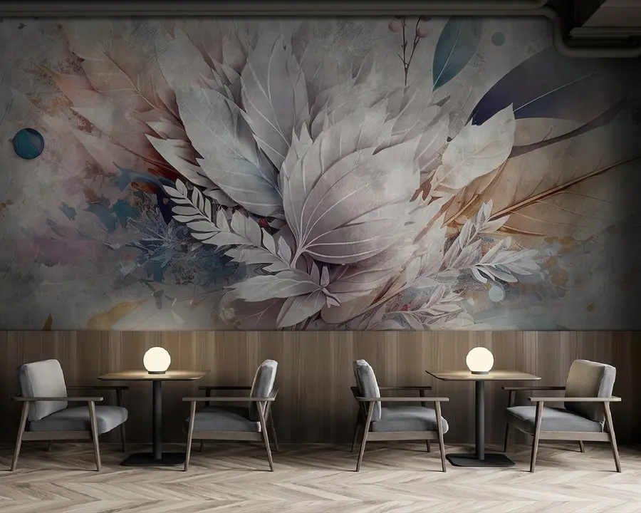 Grandes hojas tropicales en delicados y sobrios tonos pastel