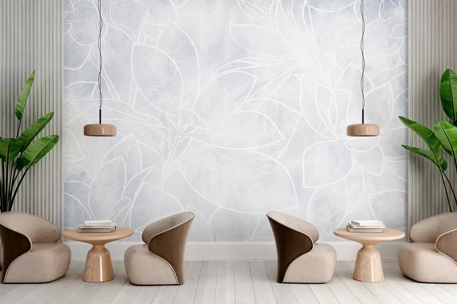 Grandes hojas tropicales en delicados y sobrios tonos pastel