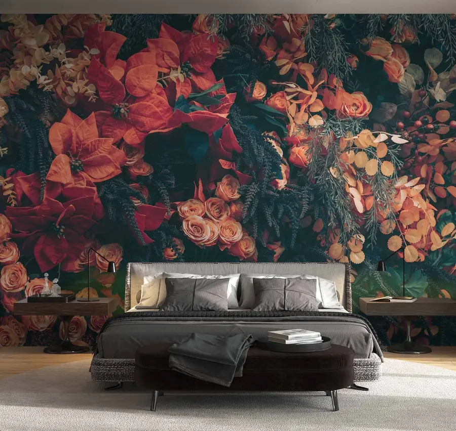 Tulipanes y peonías de estilo victoriano, en colores rojo y morado
