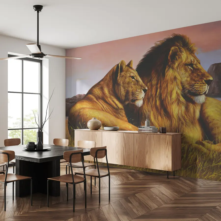 Hojas de monstera tropical brillantes, tonos naranja, beige, verde y rojo.