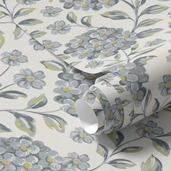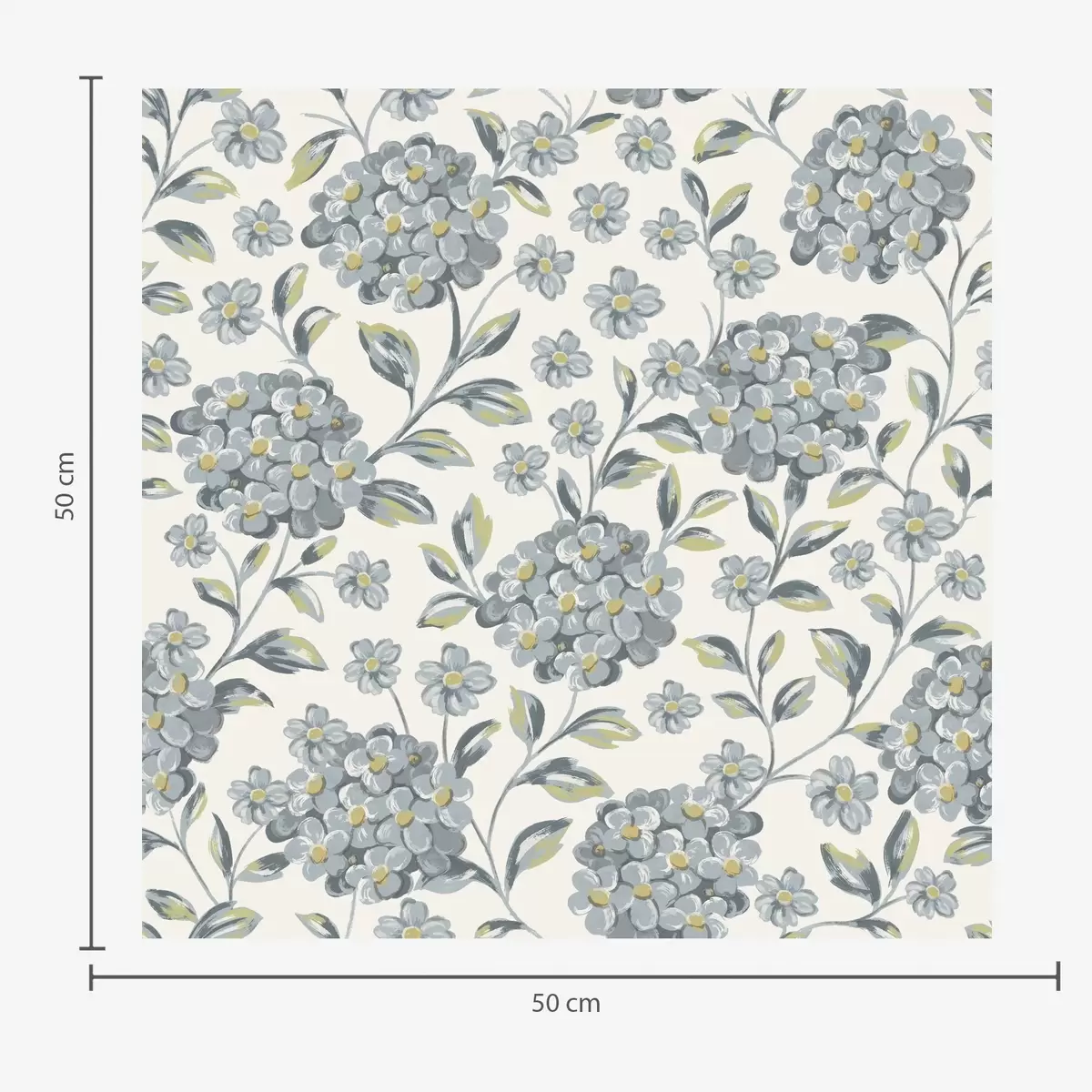Papel tapiz Flores y hojas frondosas en una paleta de colores gris azulados. Nr. a00778