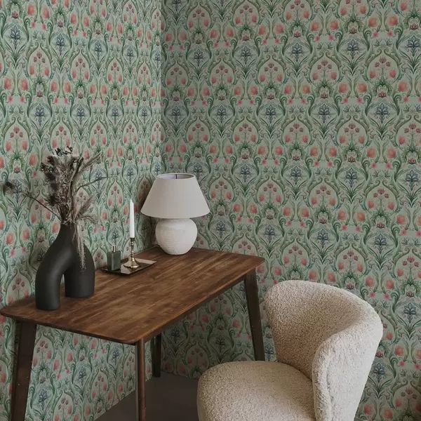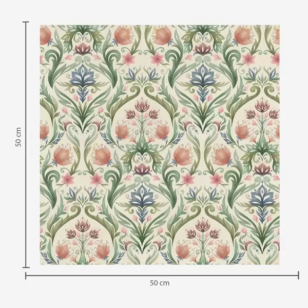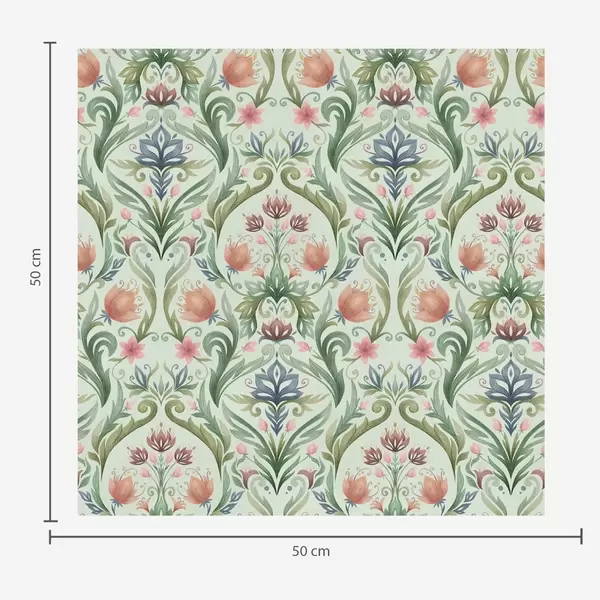 Papel tapiz Adorno floral simétrico, paleta de colores menta y crema. Nr. a00827v1
