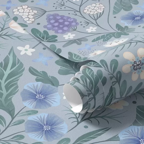 Papel tapiz Flores silvestres y bayas sobre fondo gris azulado Nr. a00849v1