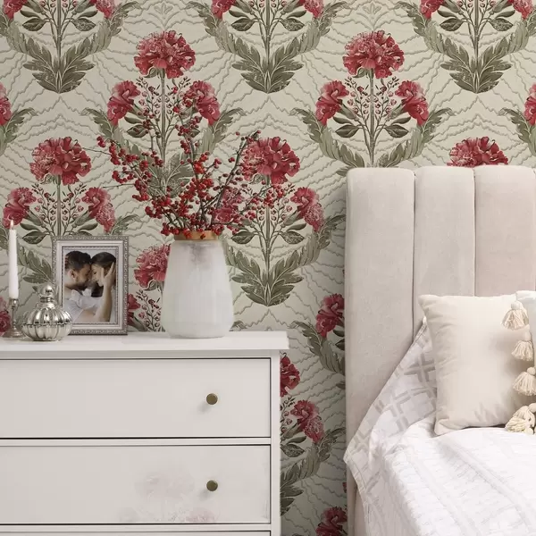 Fotomurales Grandes peonías rojas con fondo gráfico, fondo crema Nr. a00857