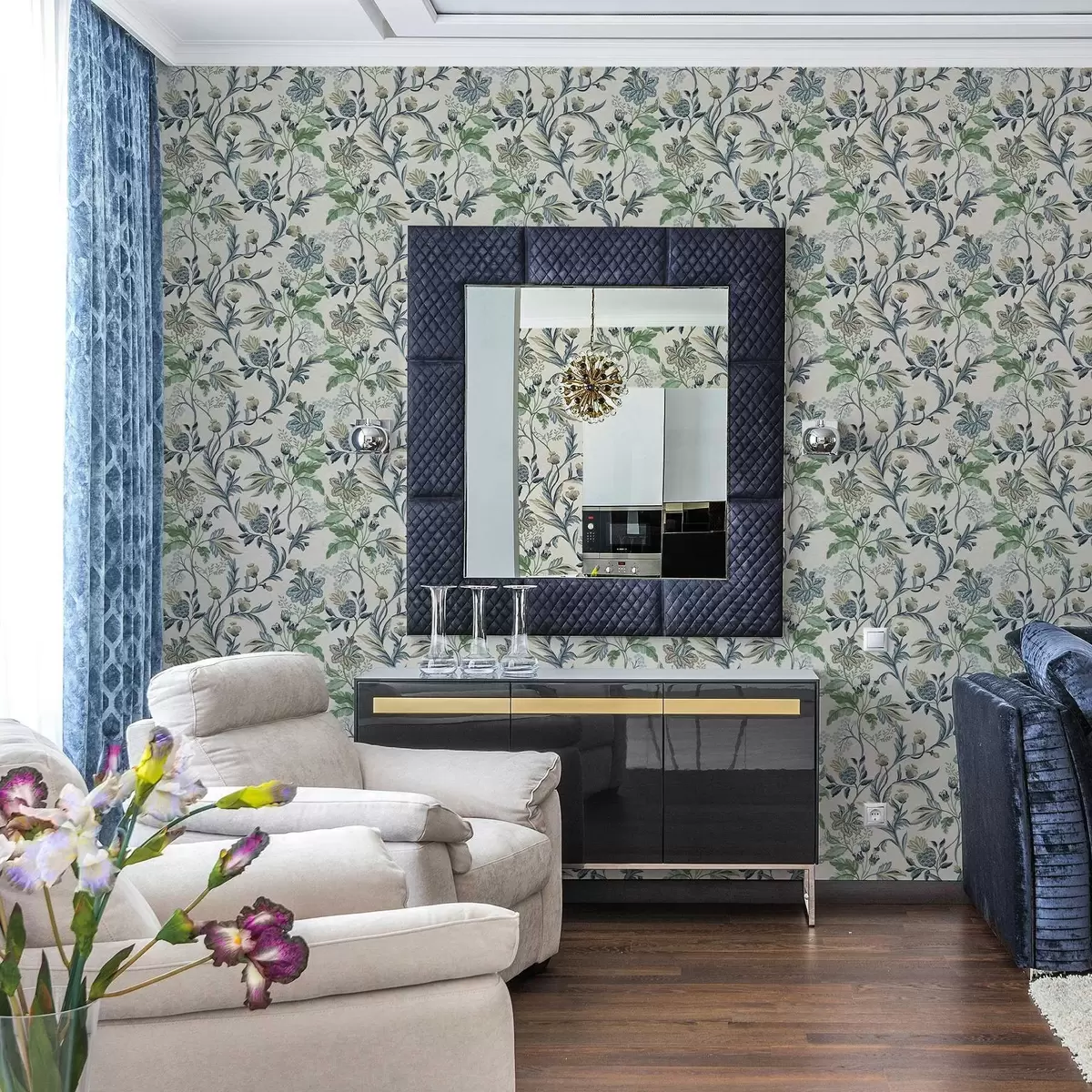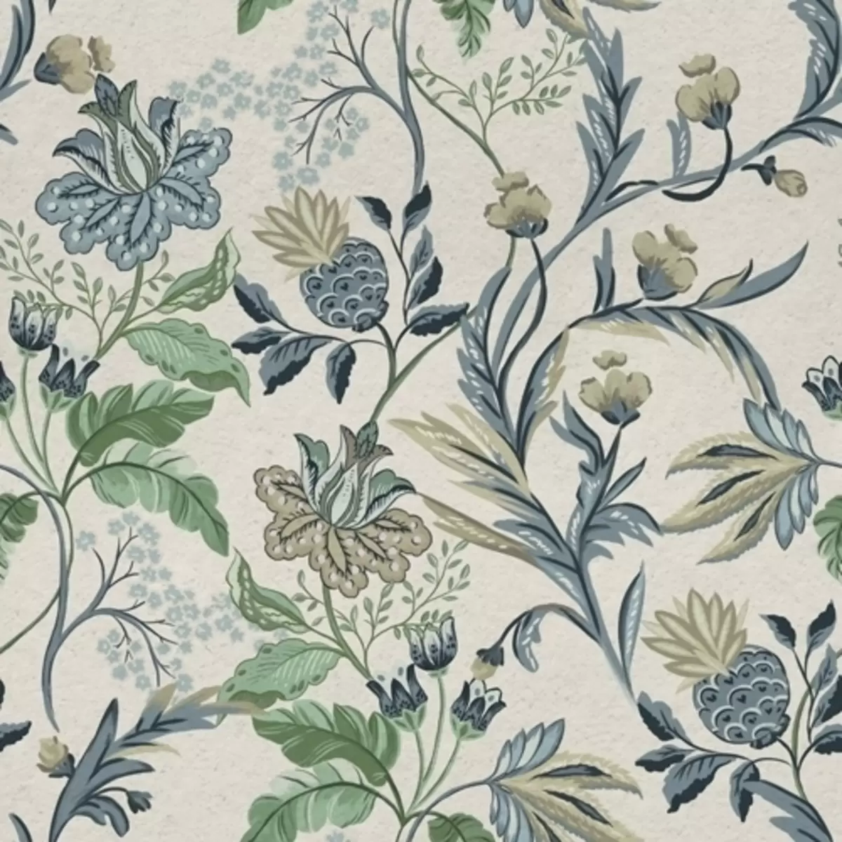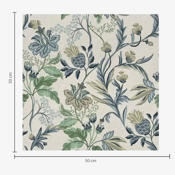 Fotomurales Flores y hojas folk azul verdosas sobre fondo crema Nr. a00863