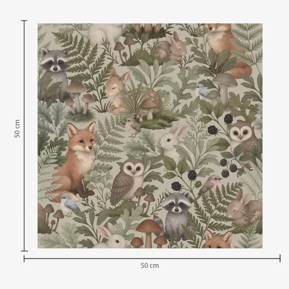 Fotomurales Animales del bosque, helechos y setas sobre fondo beige claro. Nr. a00880v1