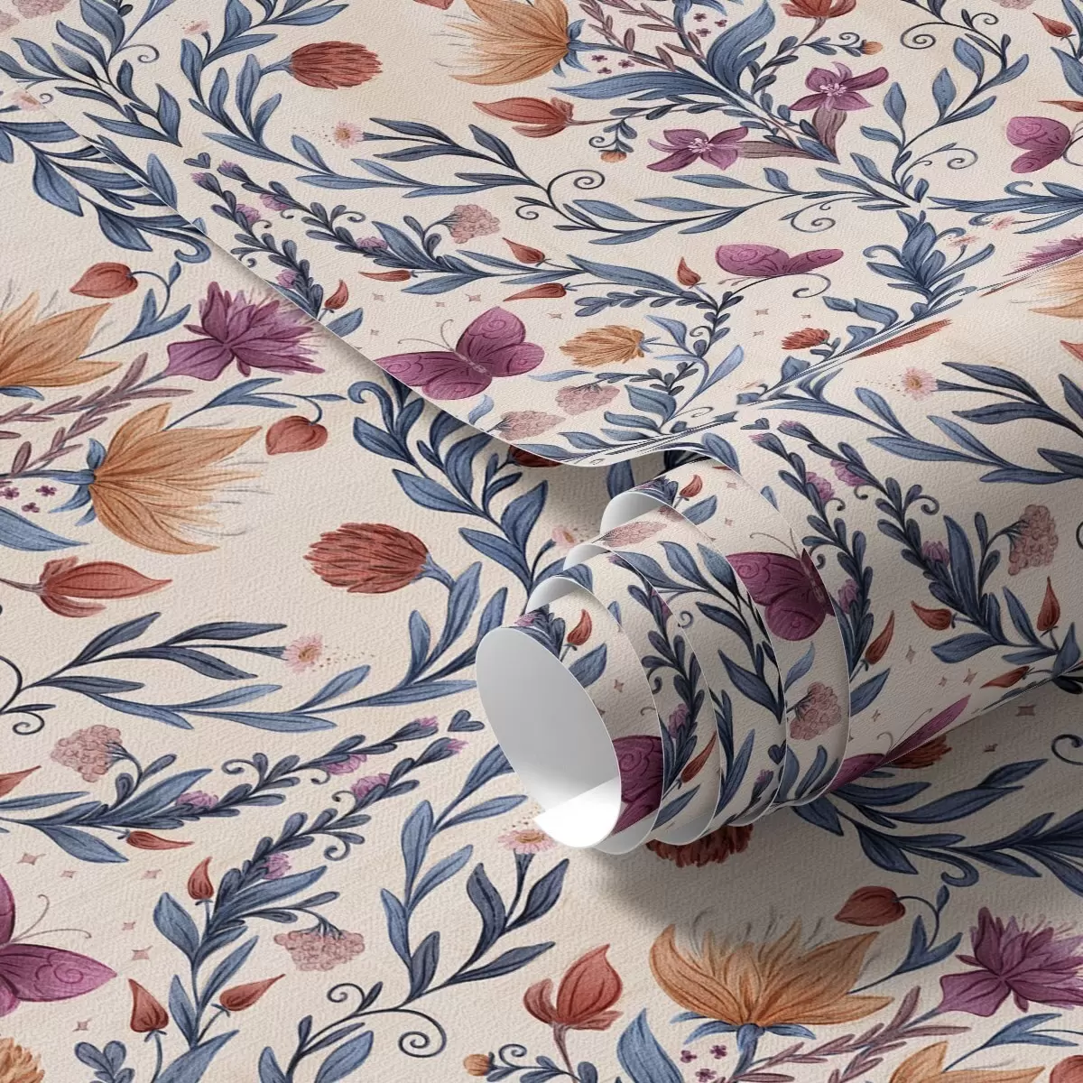 Fotomurales Damasco floral con mariposas sobre fondo melocotón suave. Nr. a00926