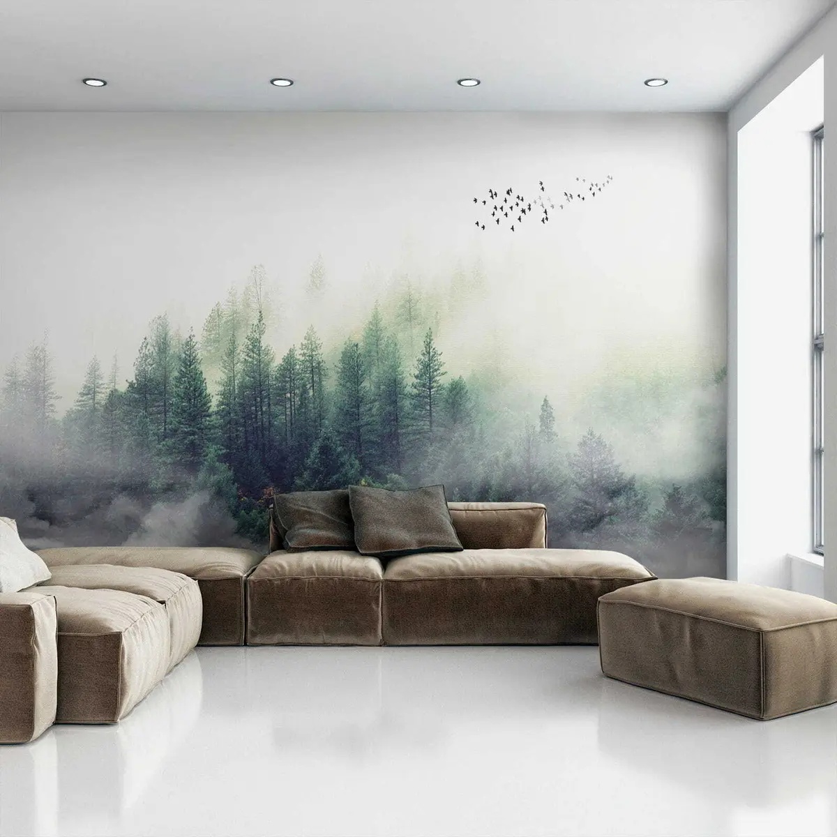 Fotomurales Bosque y pájaros en la niebla. Nr. u10882