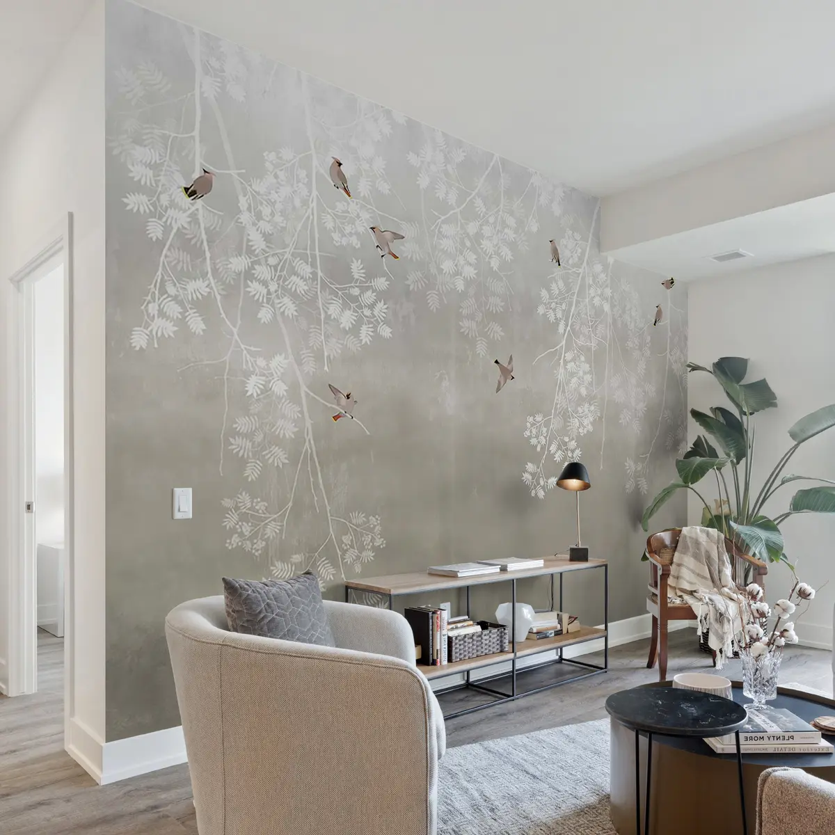 Puede limpiar el papel pintado muy suavemente con una esponja ligeramente humedecida. Sin embargo, no recomendamos frotar ni utilizar detergentes para limpiar el papel pintado, ya que podría dañar su acabado y sus colores.