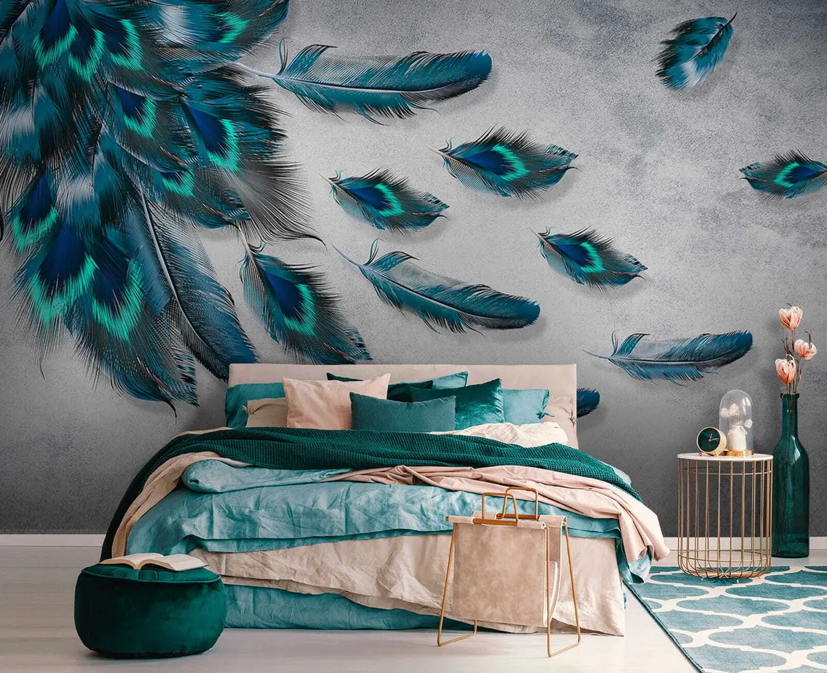 Fotomurales Plumas de pavo real en el fondo de la pared de hormigón Nr. u29836