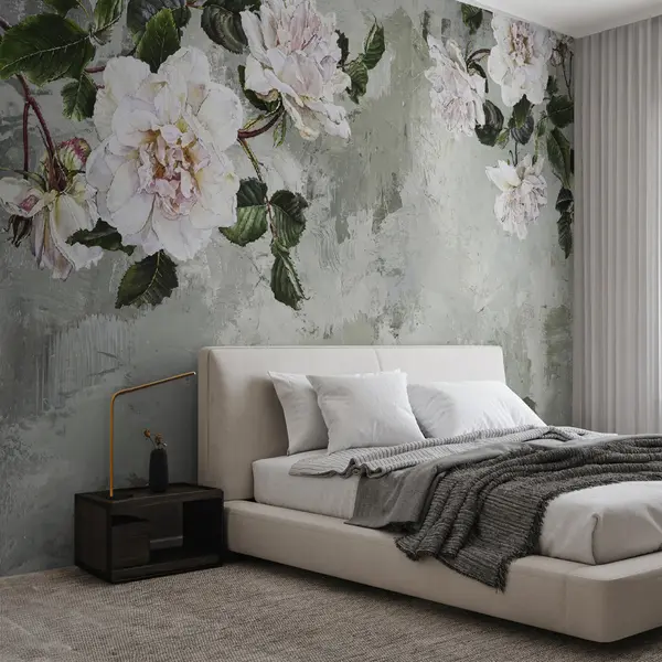 Fotomurales Ramas florecientes en el fondo de una pared en mal estado Nr. u37301
