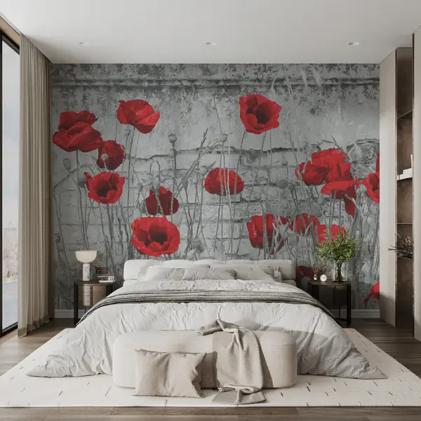 Fotomurales Amapolas brillantes en el fondo de la pared. Nr. u40552