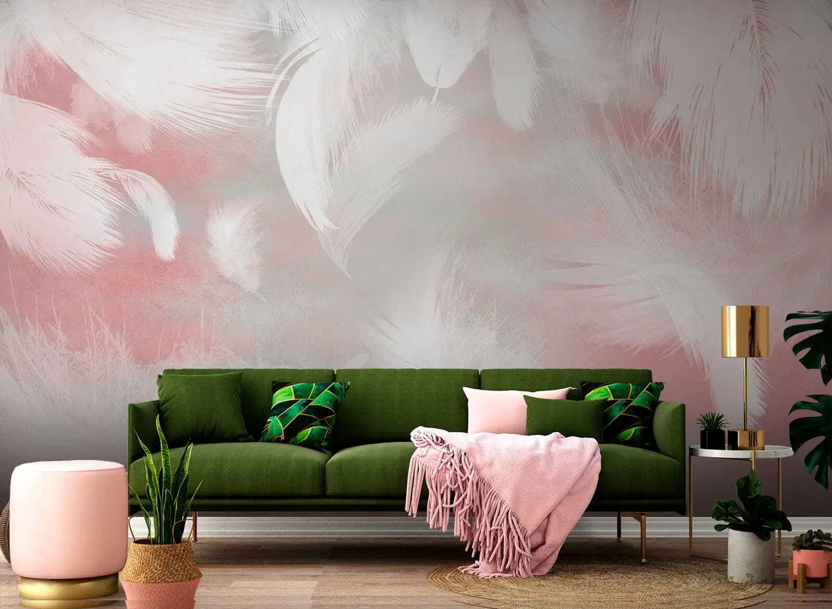 Fotomurales Plumas blancas sobre fondo rosa Nr. u41755