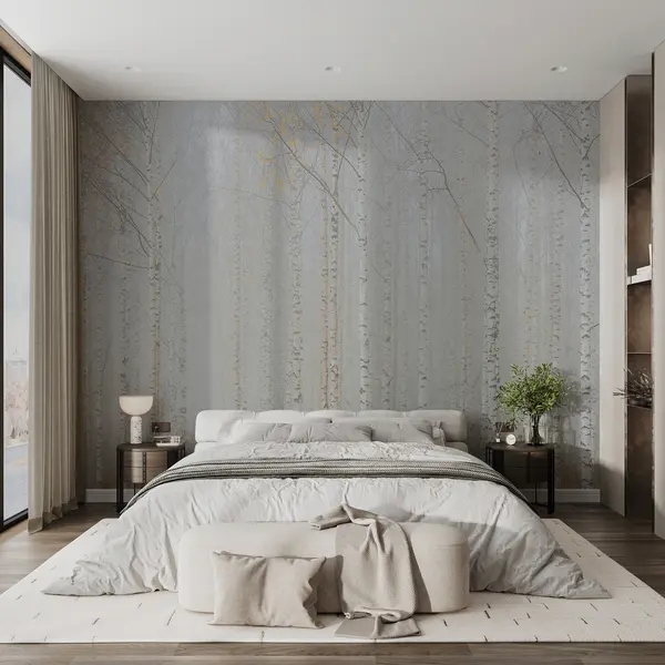 Fotomurales Bosque de abedules en la niebla Nr. u58963