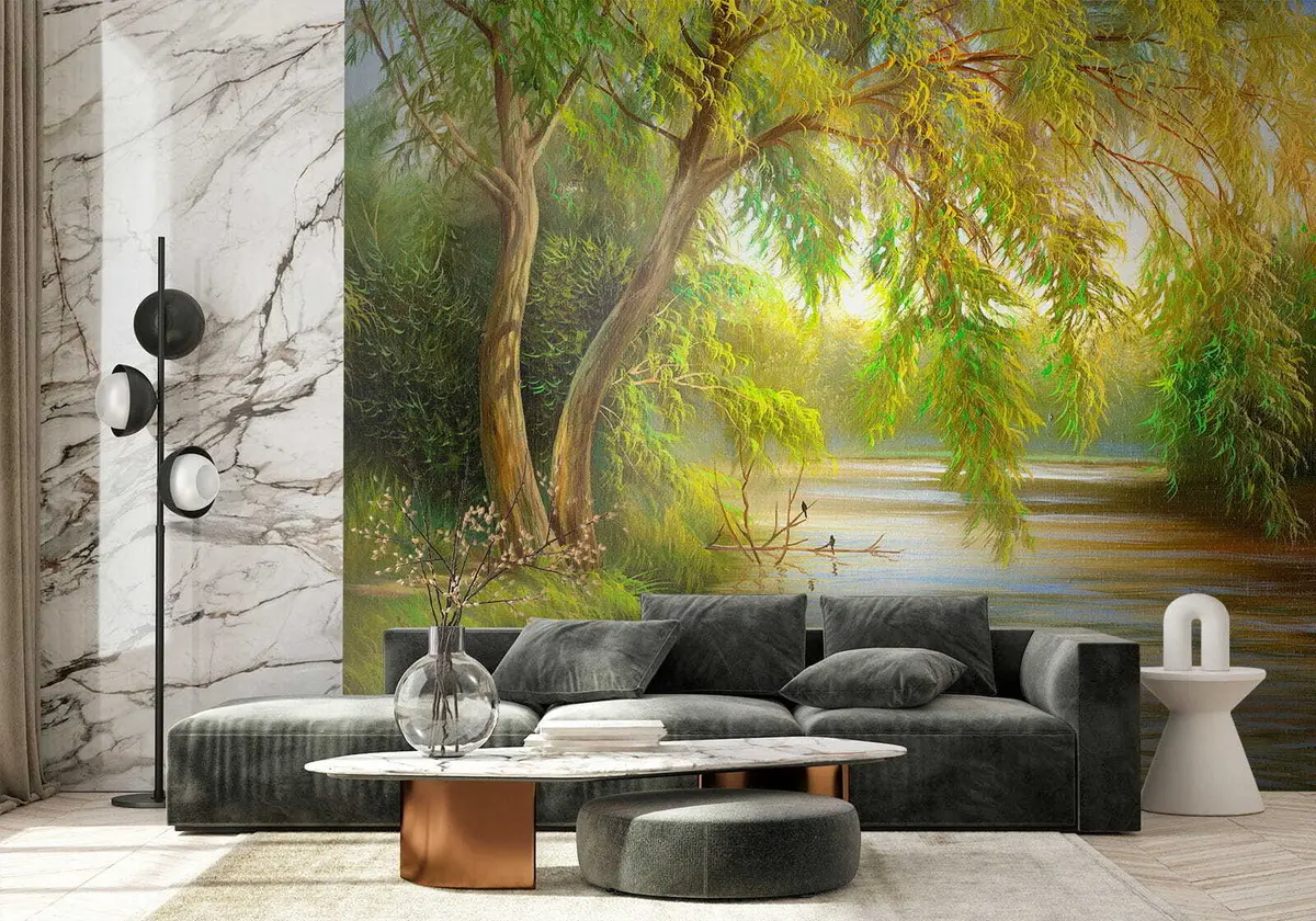Se puede limpiar suavemente con una esponja suave. Los murales de pared con recubrimiento de barniz pueden limpiarse con agua.