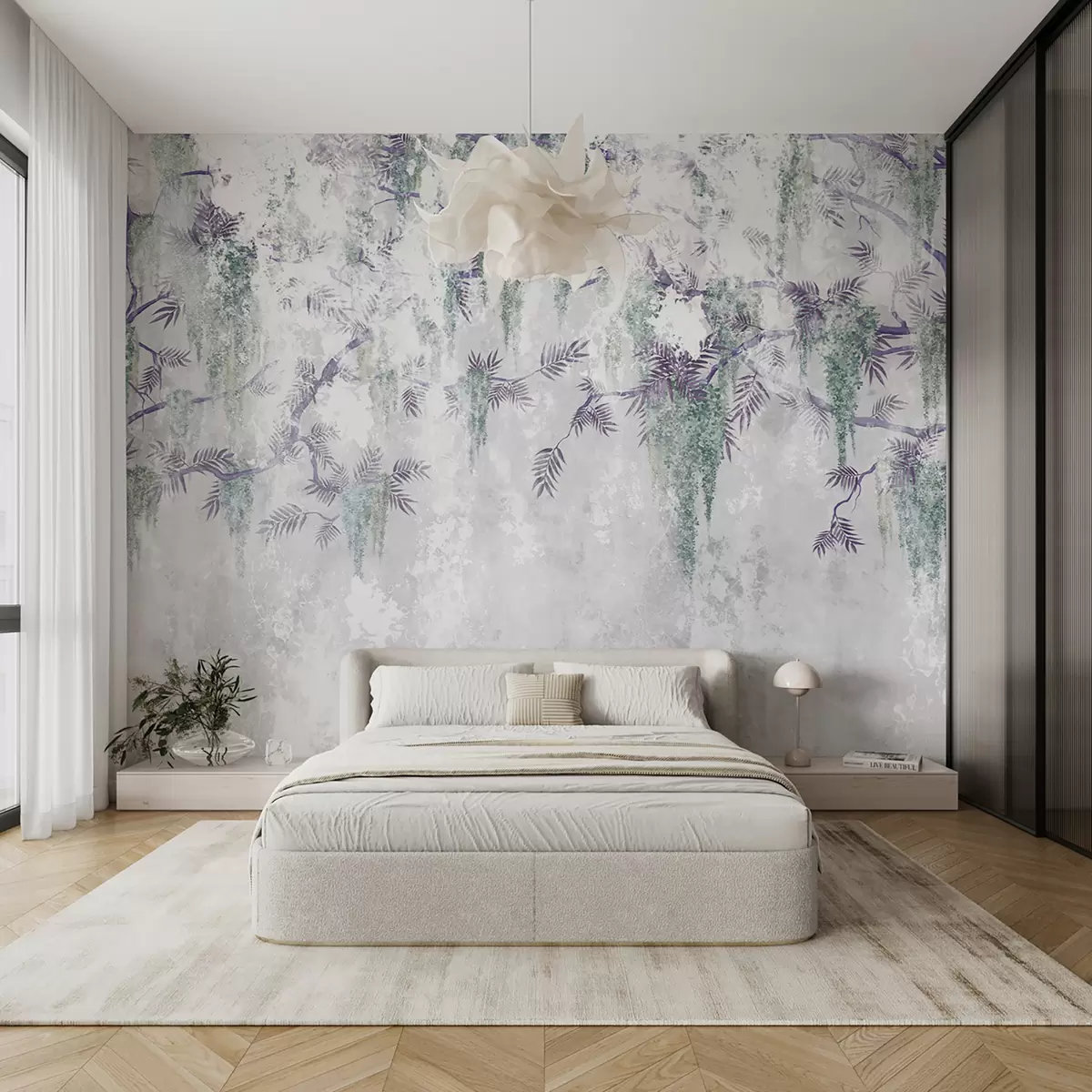 Fotomurales Colgante de moda grunge ramas con flores de color púrpura en colores azules Nr. u73816v1