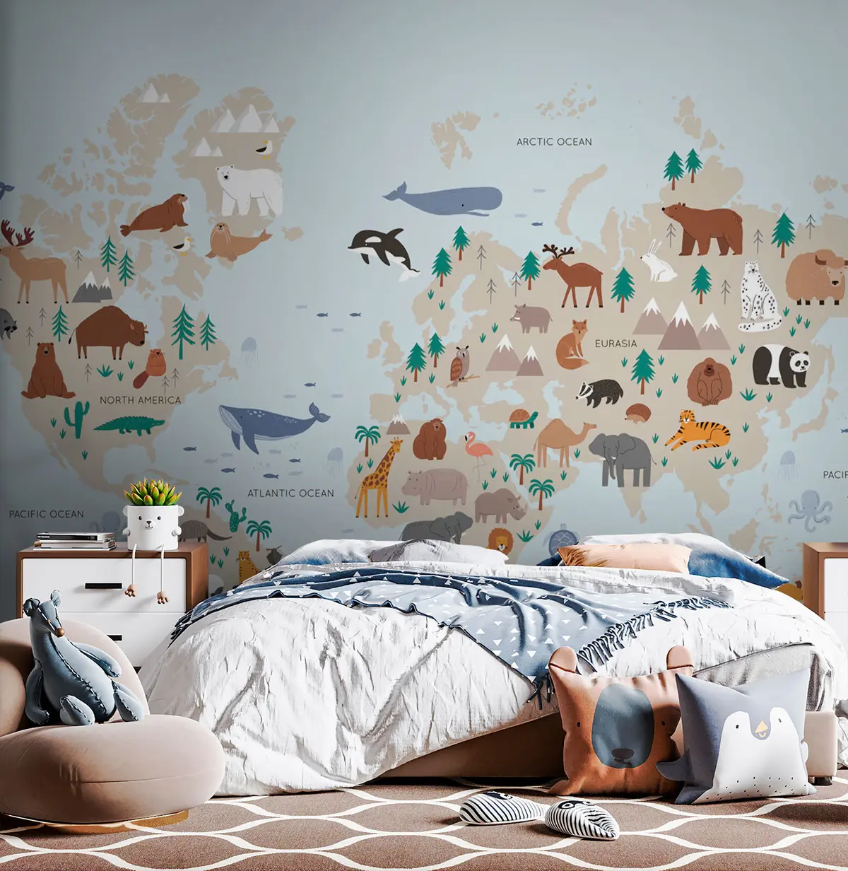 Fotomurales Mapas de las tarjetas del mundo para niños, Photo Wallpaper Children's Nr. u74435