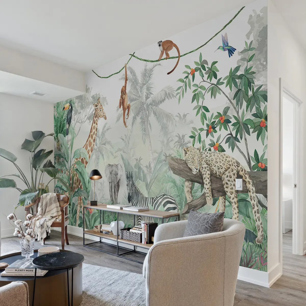 Fotomurales Panorama de la jungla con animales Nr. u74709