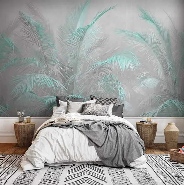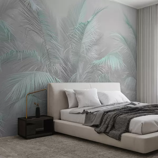 Fotomurales Hojas de turquesa sobre un fondo gris Nr. u78557
