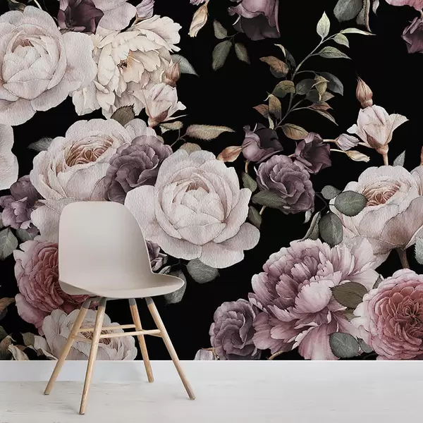 Fotomurales Papel tapiz de rosa vintage - flores en tonos morados y rosados - ideal para la cama y la sala de estar Nr. u93612