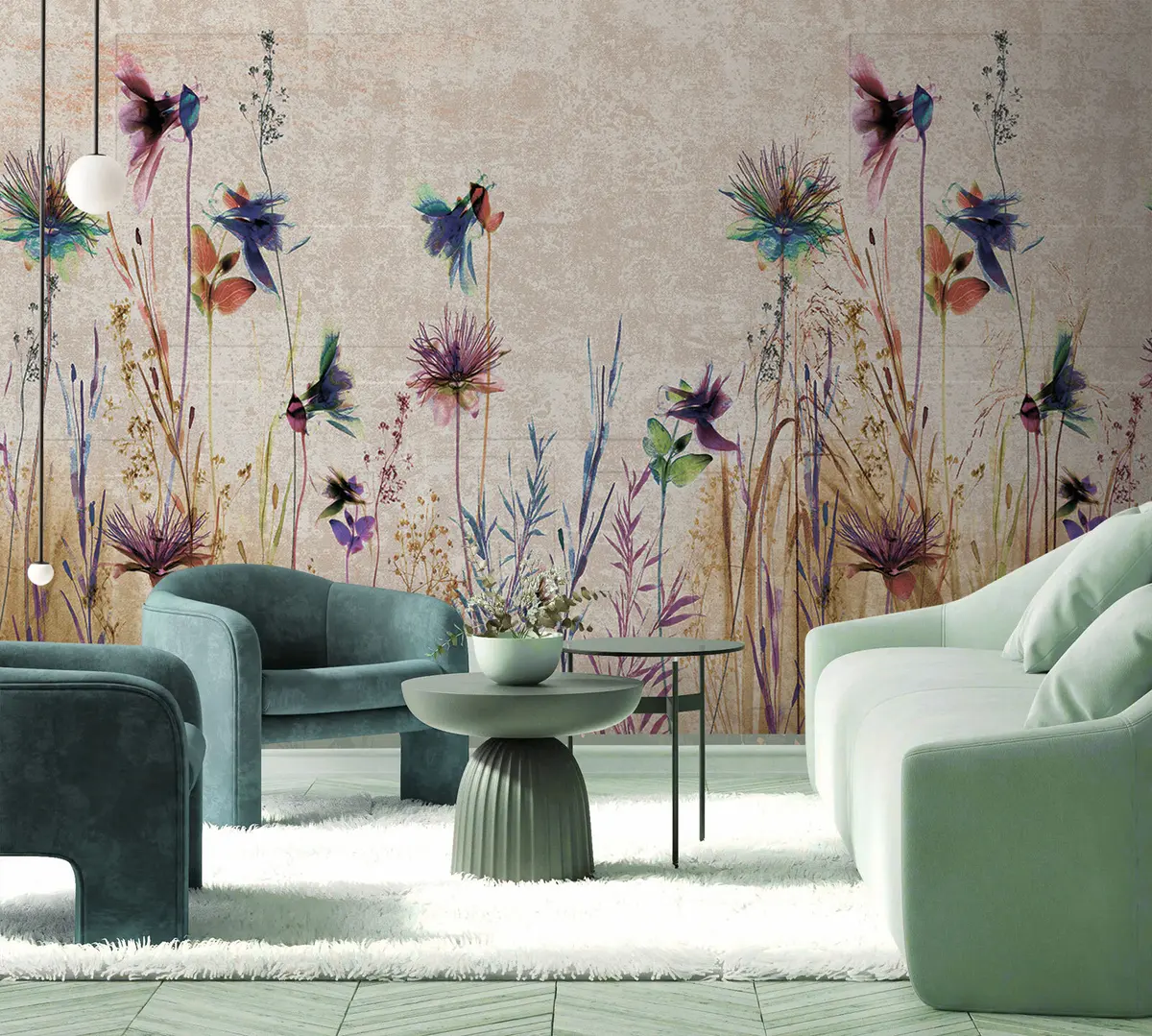 Fotomurales Flores altas inusuales sobre un fondo beige Nr. u93672
