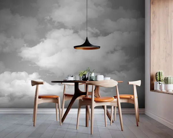 Fotomurales Las nubes blancas sobre un cielo gris son una nueva tendencia en el interior. Nr. u94178