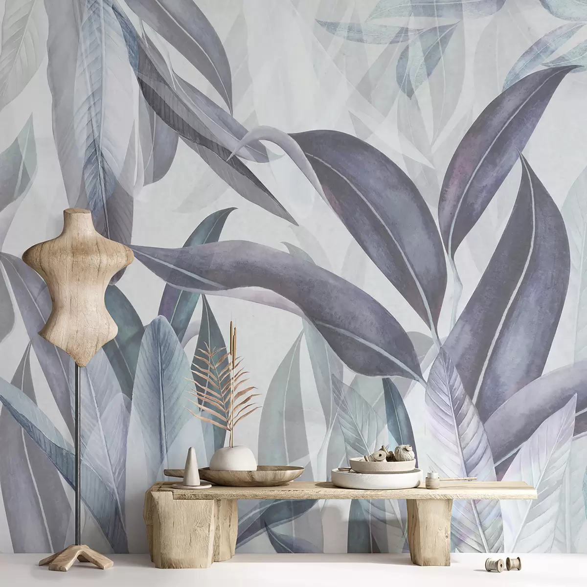 Fotomurales Hojas de palmera verdes y rosas en tonos azules Nr. u94302v1