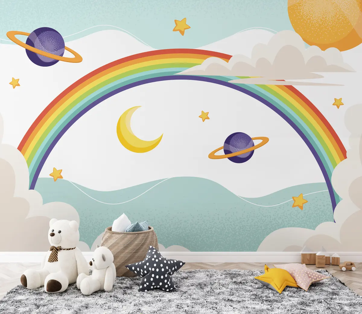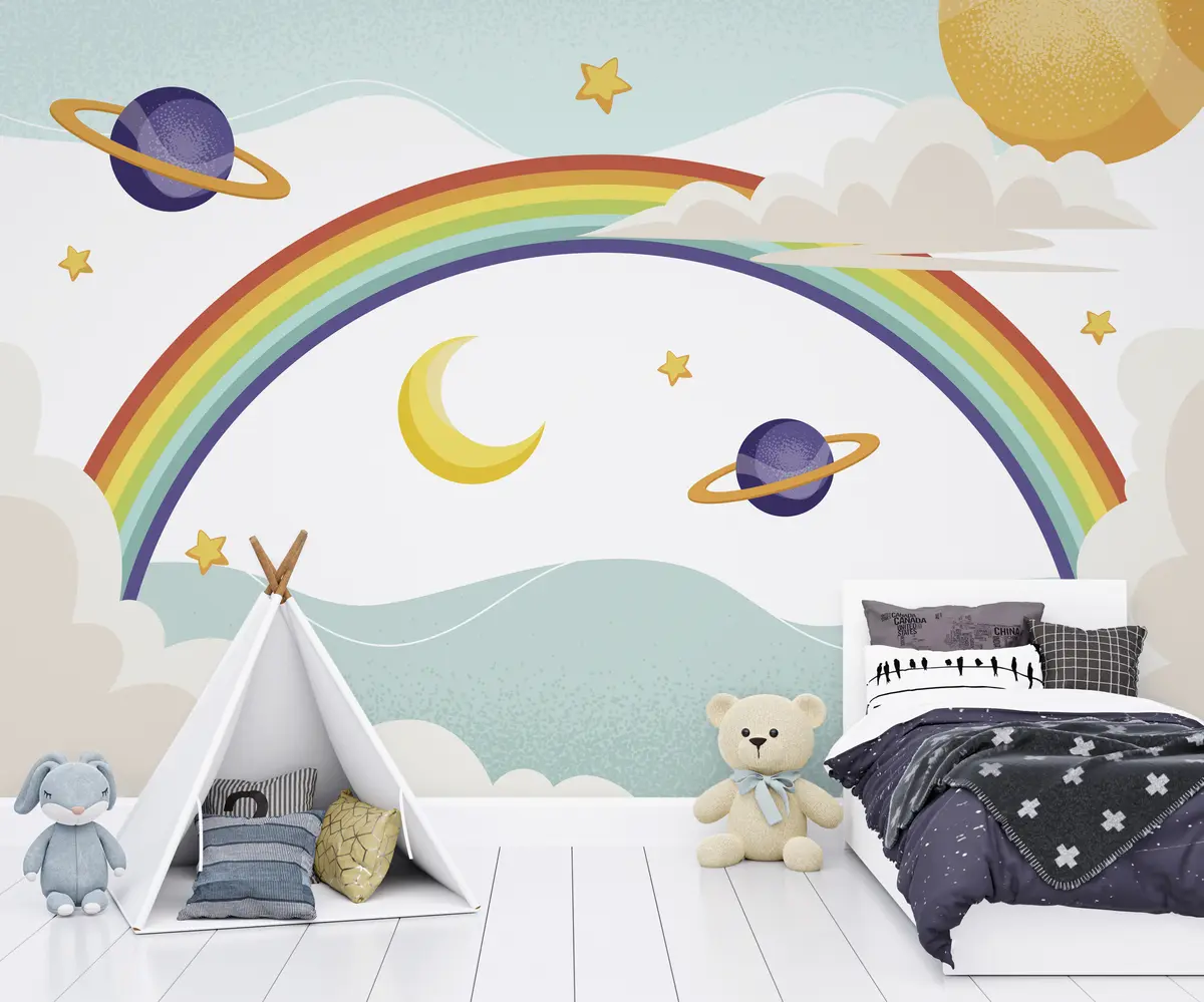 Fotomurales Arco iris en las nubes, planetas, estrellas. Nr. u94327