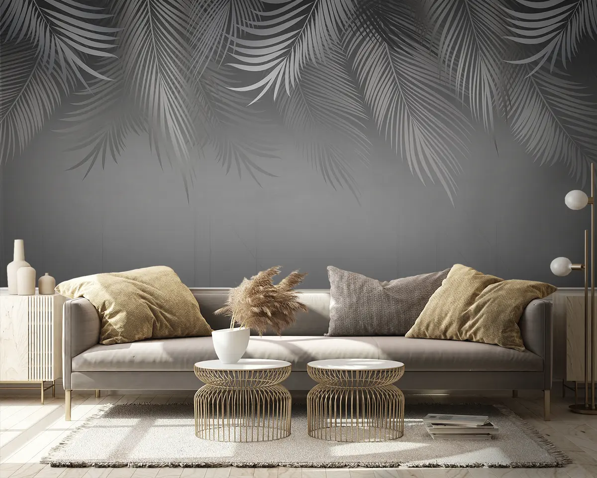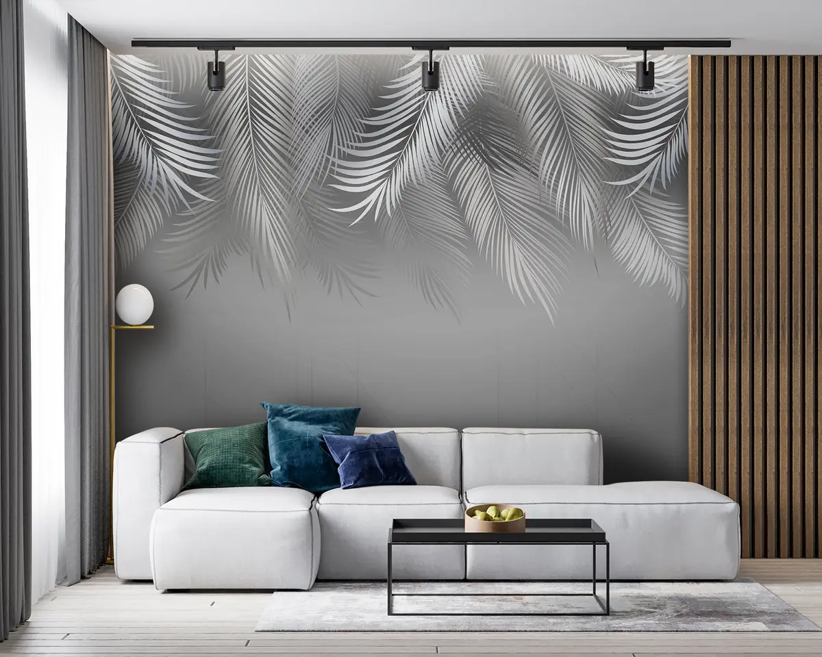 Fotomurales Hojas tropicales y fondo geométrico translúcido. Nr. u94962