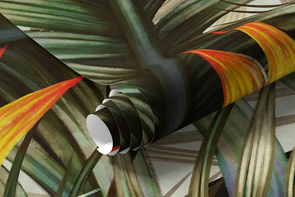 Fotomurales Aves exóticas loro y tucán entre hojas de plátano y palma Nr. u95256