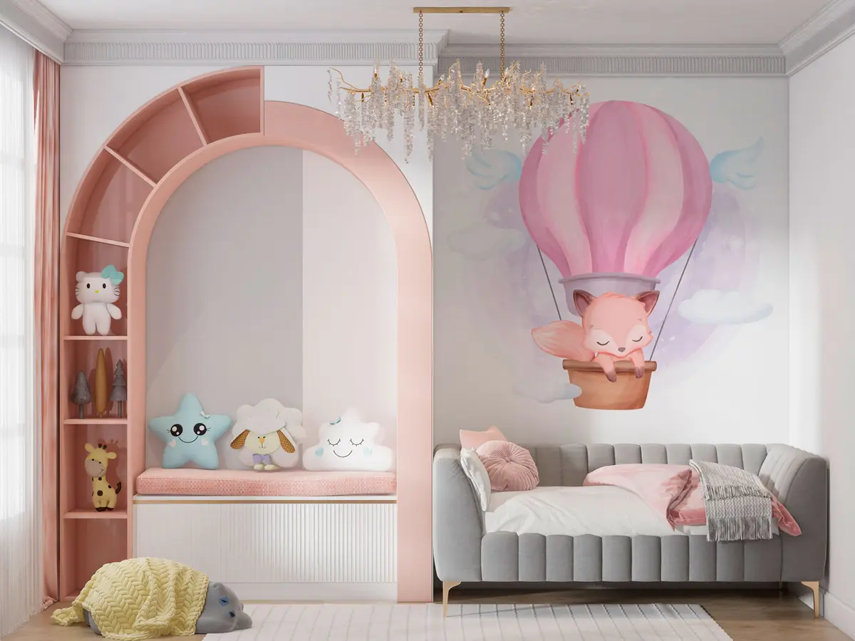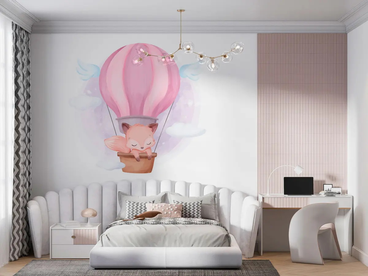 Fotomurales Ilustración de un zorro en un globo aerostático. Nr. u97395