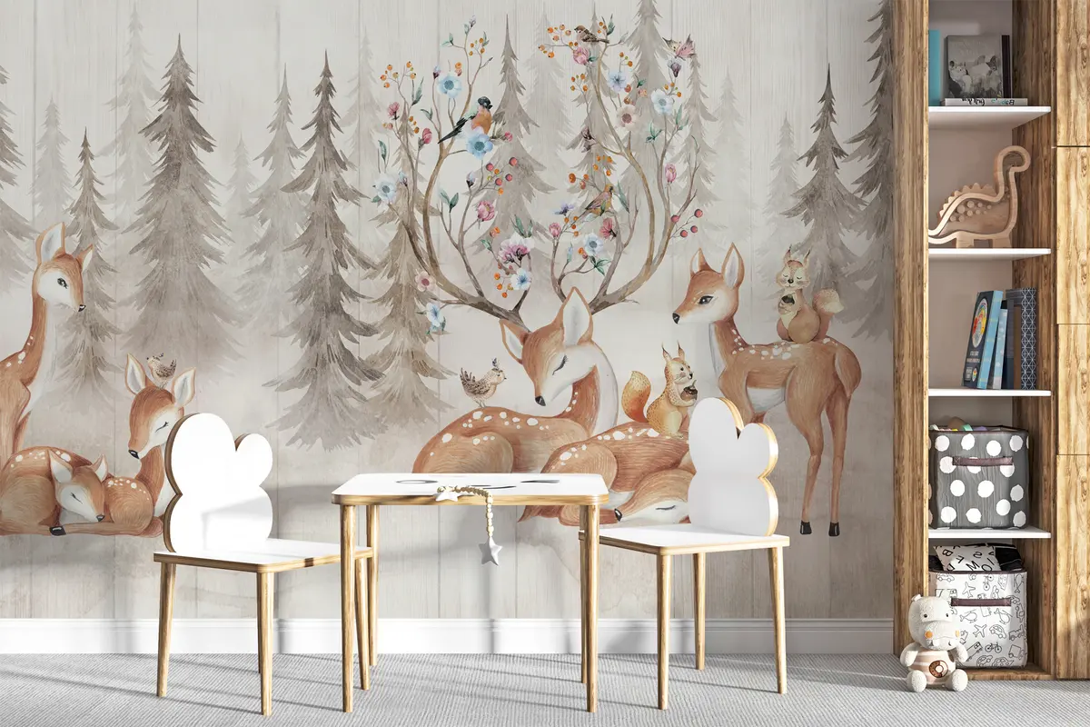 Fotomurales Bosque de acuarelas con renos Nr. u98679