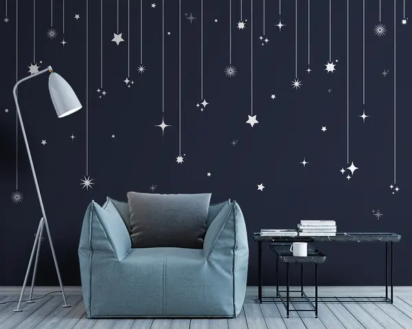 Fotomurales Estrellas fugaces de color blanco, elegante patrón minimalista, tema espacial Nr. u98767v1