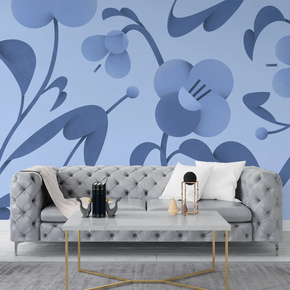 Fotomurales Estampado botánico con flores decorativas en azul Nr. u99196v8
