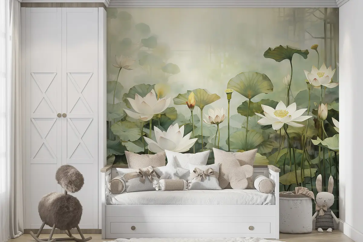 Fotomurales Flores de loto en el lago, selva, arte tropical, verdor Nr. u99454d1
