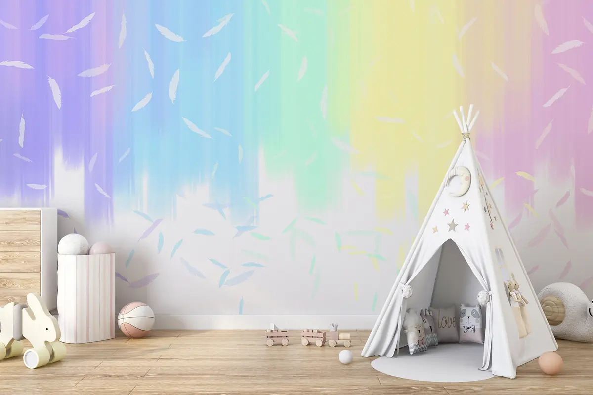Fotomurales Arco iris con plumas, juvenil, cuento de hadas, degradado Nr. u99651