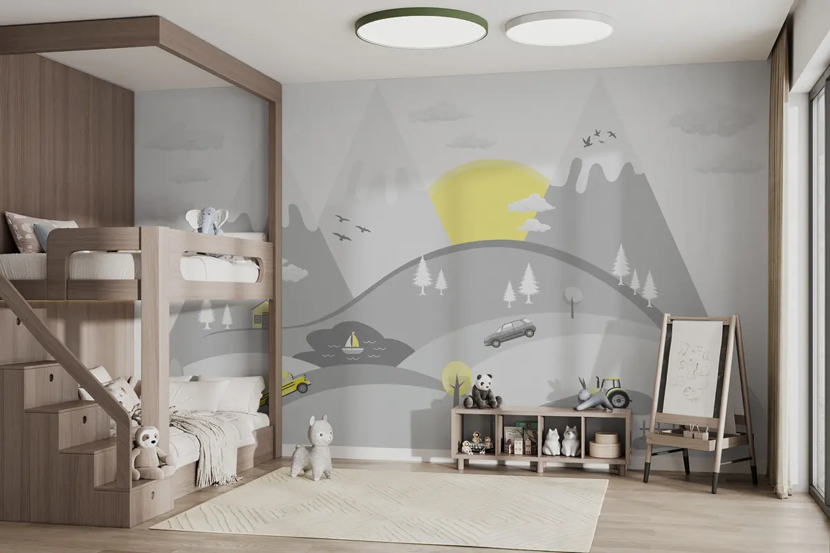 Fotomurales Montañas, sol y coches para habitación infantil Nr. w00219