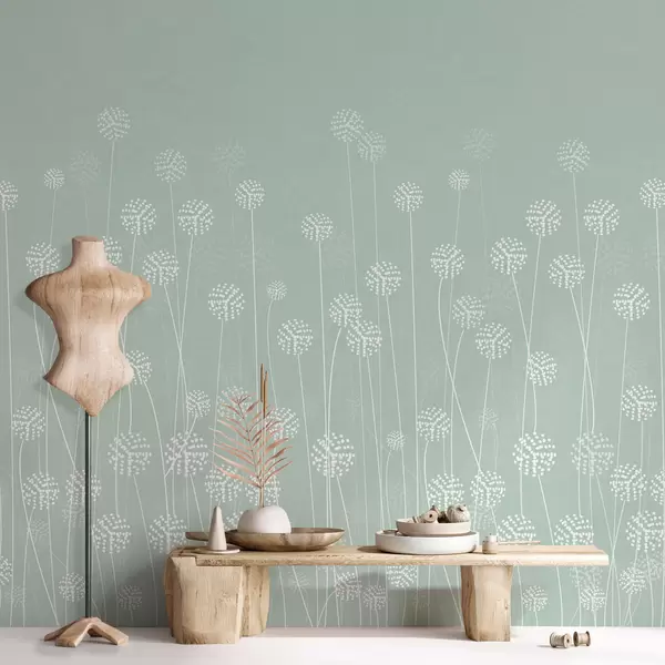 Fotomurales Campo de diente de león de color verde Nr. w00613v3