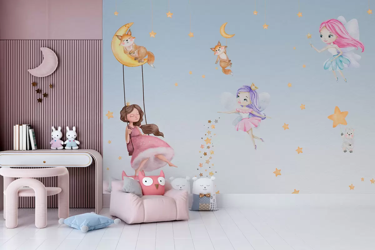 Fotomurales Hadas y animales lindos sobre fondo azul. Nr. w00621