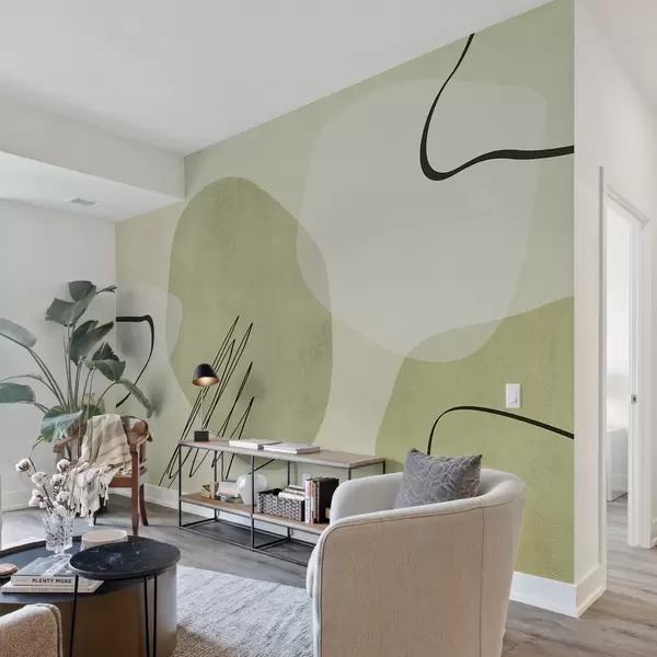 Fotomurales Abstracción boho, mancha, geométrica, líneas, textura, tonos de verde. Nr. w00815v1