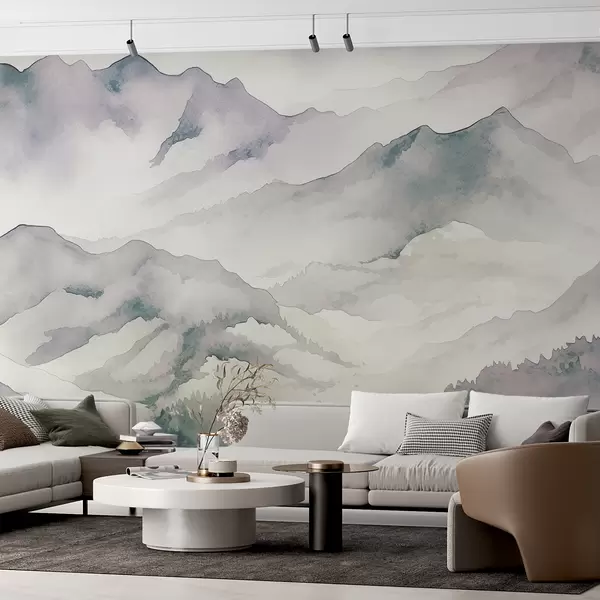 Fotomurales Cordilleras acuarela, paisaje, paisaje, azul, gris, color sepia Nr. w00840v1