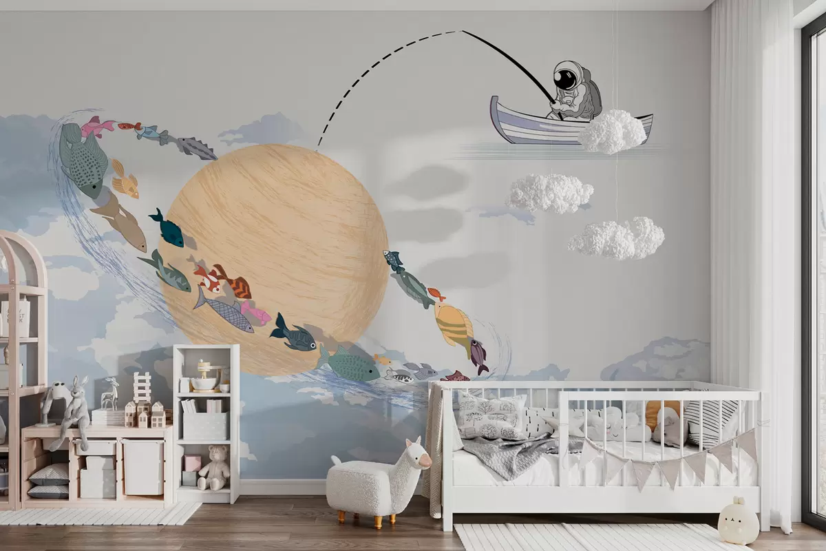 Fotomurales Luna astronauta y pez en azul. Nr. w00869