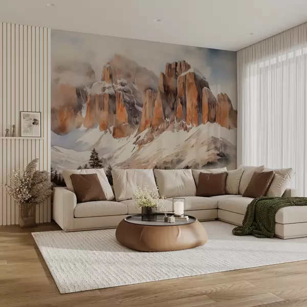Fotomurales Valle nevado al pie de las montañas Dolomitas acuarela Nr. w00945