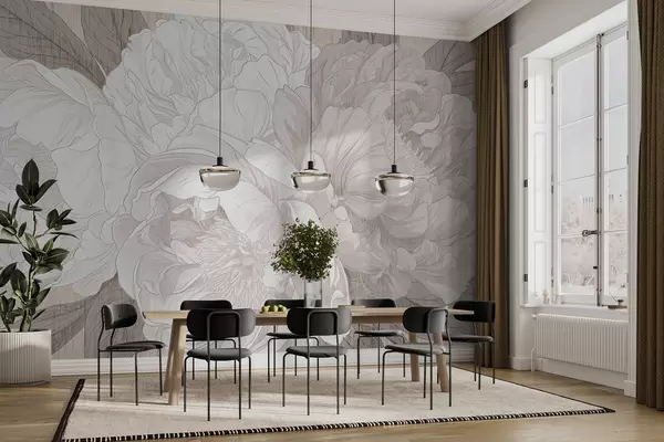 murales de pared Grandes flores de peonía texturizadas en tonos beige w01141