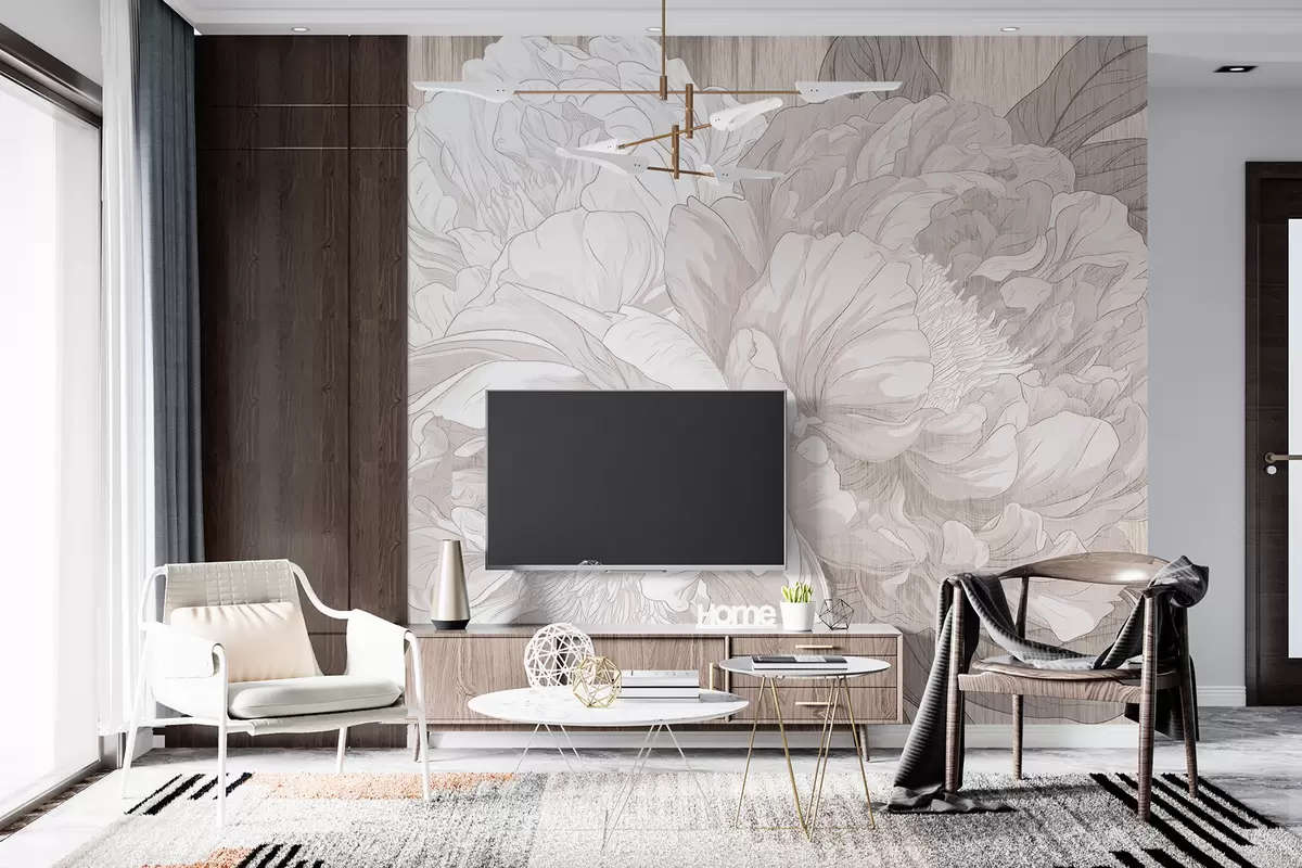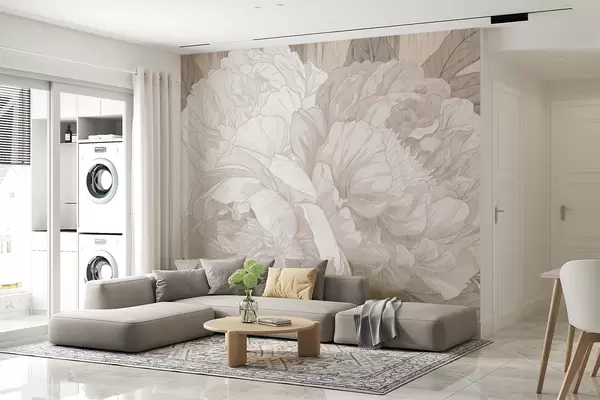 Fotomurales Grandes flores de peonía texturizadas en tonos beige Nr. w01141