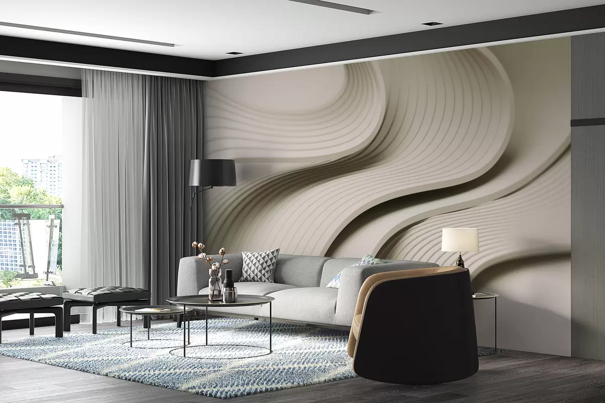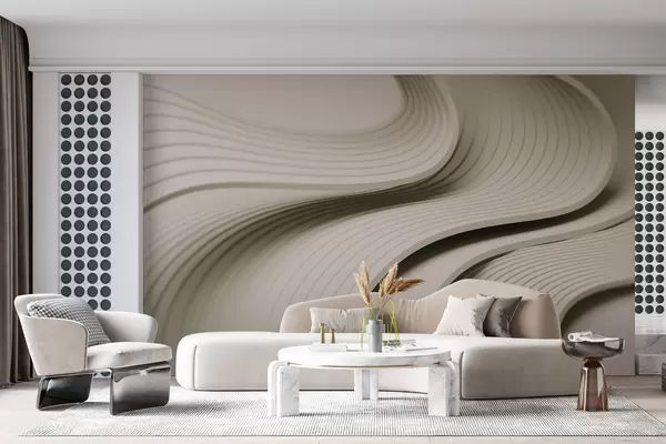 Fotomurales Elegantes ondas voluminosas en estilo 3D en tonos beige Nr. w01147v2