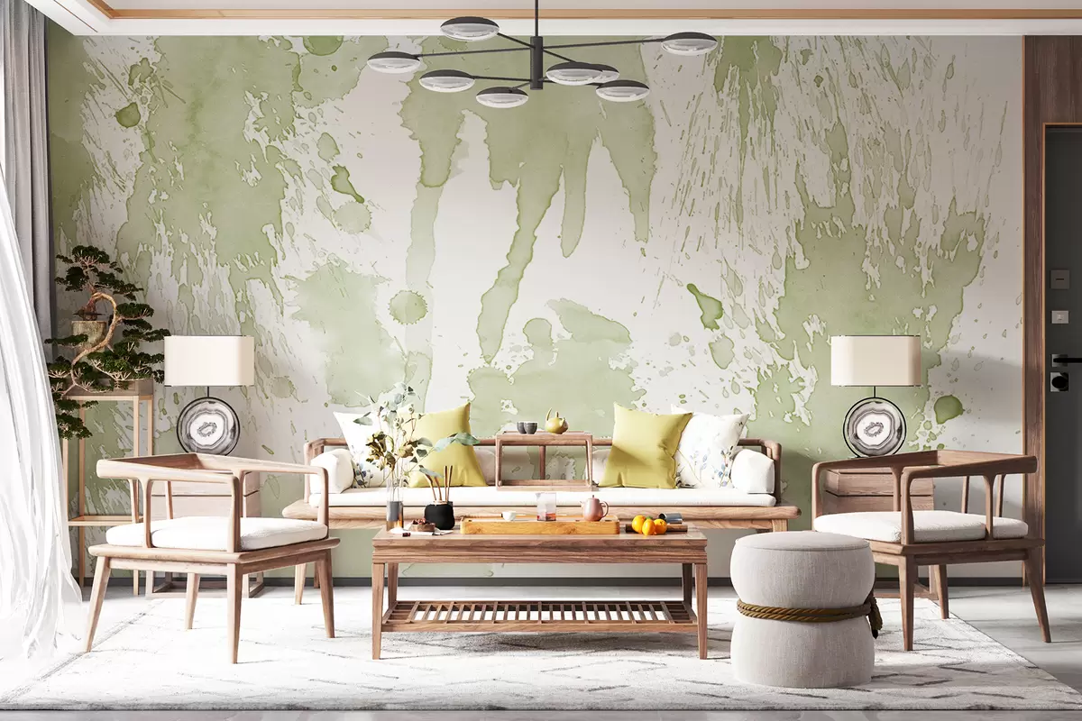 Fotomurales Salpicaduras de acuarela, abstracción de dibujo de pintura, color verde Nr. w01285