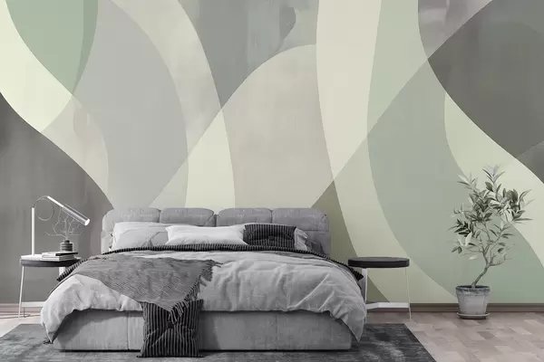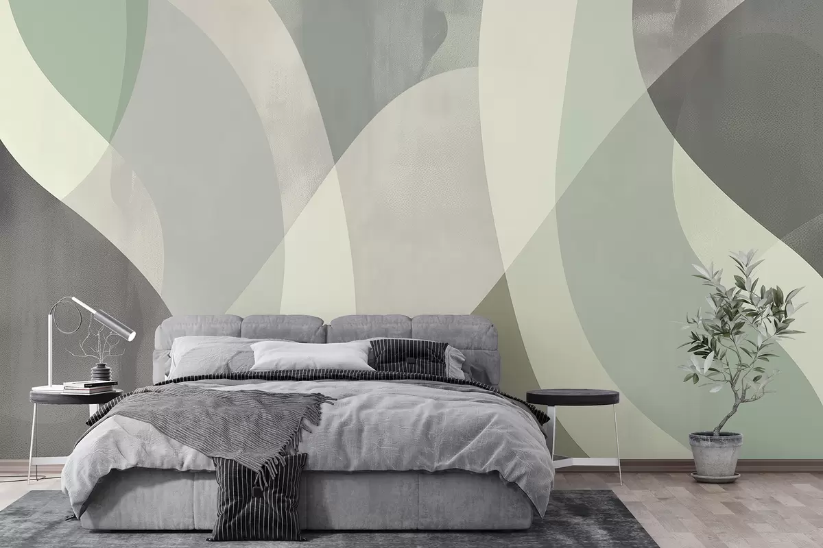 Fotomurales Curvas suaves en tonos apagados con líneas fluidas y degradados verdes, minimalista y moderno. Nr. w01334