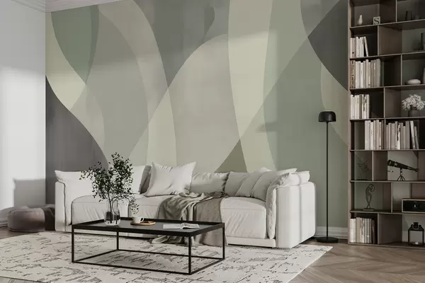 Fotomurales Curvas suaves en tonos apagados con líneas fluidas y degradados verdes, minimalista y moderno. Nr. w01334