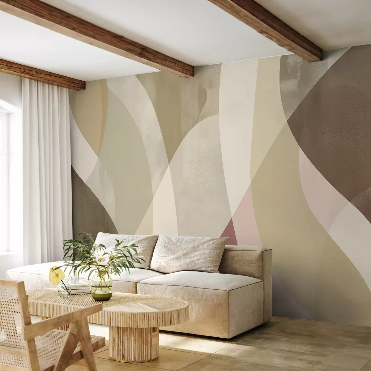 Fotomurales Curvas suaves en tonos apagados con líneas fluidas y degradados beige, minimalista y moderno. Nr. w01334v1